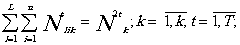 6) суммарная интенсивность движения от k-х пунктов до l-го пункта через все мосты должна обеспечивать реализацию всех транспортных потоков, выходящих из пунктов k и входящих в пункт l: