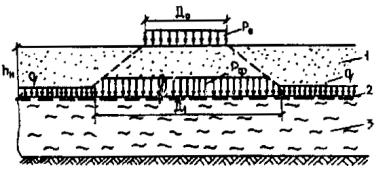 площадки на глубине hn, Часть нагрузки рт, воспринимаемую прослойкой, определяют методом последовательных приближений по формуле: где Sдоп - допустимая колея выдавливания Sдоп = 0,1Дк; fср - средний коэффициент