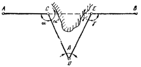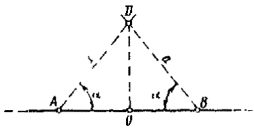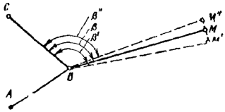 Рис. 3.1. Схема восстановления вершины угла способом угловой засечки
