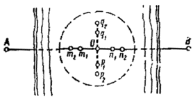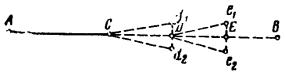 Рис. 5.7. Схема восстановления перпендикуляра к середине хорды методом линейной засечки