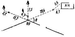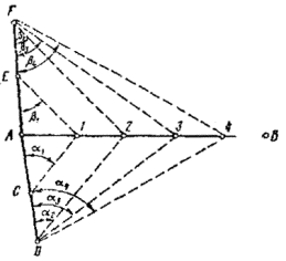 Рис. 7.5. Схема разбивки центров опор угловыми засечками с точек базиса