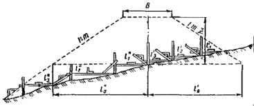 Рис. 4.6. Схема разбивки земляного полотна на косогорах а с подгорной Для выемки определение величин ведут по формуле: