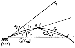 Устанавливают длину хорды (радиуса - вектора) dn=2Rsincn. 5.4.4. Для клотоидной кривой величину полярного угла устанавливают от точки начала кривой по формуле