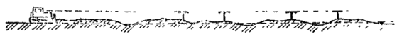 Рис. 3.3. Схема вешения через холм: а - профиль: б - план