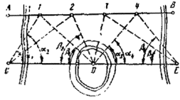 Рис. 4.2. Схема восстановления перпендикуляра к оси дороги зеркальным эккером
