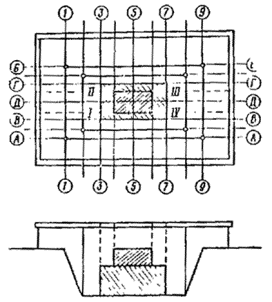 Рис. 9 1. Схема расположения строительной сетки относительно проектируемого сооружения
