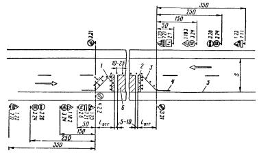 проезжей части; 5 -кромка проезжей части; 6 -зона дорожных работ;