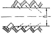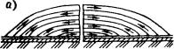Рис. 6.11. Схема расчистки лавинного завала: а – «по обертывающей» (в продольном направлении); б – «по наклонной» (в продольном направлении) 6.5.14. Очистку дороги от снега на серпантинах можно выполнять универсальными бульдозерами со сваливанием снега под откос. При применении роторных снегоочистителей разработку снежных отложений на серпантинах ввиду их малых радиусов производят короткими отрезками – «секущими» (рис. 6.12).