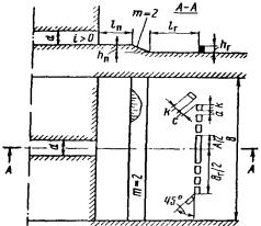Рис. 9.14. Гаситель МАДИ за круглыми трубами при B/d = 3+9,8: