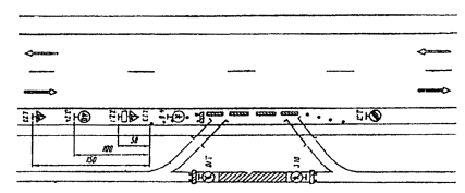 Рис. 3.5. Организация движения и ограждение места дорожных работ, выполняемых на средней полосе движения трехполосных дорог