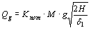 где М - масса падающего груза УДН-НК, кг; g - ускорение свободного падения (g = 9,81), м/с2; Qсж - усилие сжатия пневмоколеса, при котором измеряли Dh, Н. Величину динамического усилия Qg , развиваемого установкой динамического нагружения, определяют по формуле: