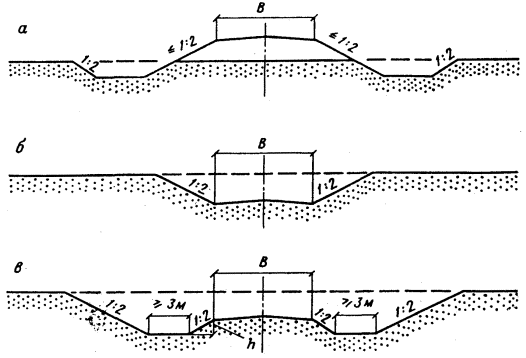 Используемая в качестве защитного слоя геотекстильная прослойка должна соответствовать общим требованиям, предъявляемым к геотекстильным материалам (табл. 3). При назначении защитного слоя и выборе материала для него следует руководствоваться табл. 4. 4.12. Защитный слой не устраивают в северной части V дорожно-климатической зоны в зимнее время, когда земляное полотно из песка находится в мерзлом состоянии. 4.13. Для защиты от выдувания откосов насыпи, возводимых в подвижных песках, а также для улучшения условий переноса песка через дорогу верхнюю часть откосов насыпей высотой более 1 м рекомендуется укреплять на 1/3 высоты путем устройства защитного слоя толщиной 10 - 15 см из пылевато-глинистых грунтов, песчано-гравийных (щебеночных) материалов или геотекстильных полотен (см. рис. 3, б). При высоте насыпей менее 1 м защитный слой на откосах не устраивают. 4.14. При благоприятных для растительности условиях откосы земляного полотна рекомендуется защищать от ветровой эрозии посевом травы с розливом битумной эмульсии или других вяжущих материалов, предохраняющих семена от выдувания. Это мероприятие выполняют одновременно с мероприятиями, обеспечивающими закрепление подвижных форм рельефа.