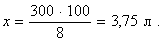 Пример. К месту работ доставляется битумная эмульсия 60 %-ной концентрации. Соотношение составляющих эмульсии рабочего состава принимают 1:7. По номограмме (см. рисунок данного приложения) определяем процентное содержание битума в эмульсии рабочего состава: оно равно 8 %. Норму расхода битума на 1 м2 принимаем равной 300 г. Тогда расход разбавленной эмульсии на 1 м2