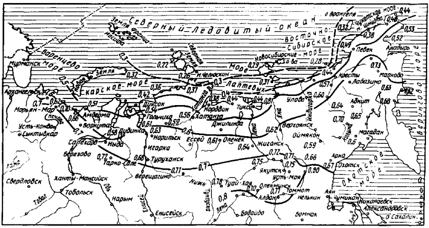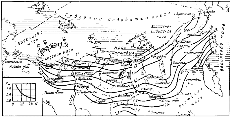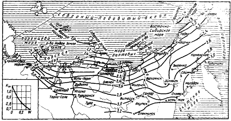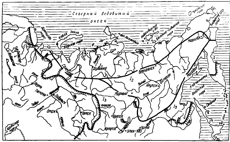 I. ОБЩИЕ ПОЛОЖЕНИЯОбласть применения1.1. Настоящие нормы предназначены для руководства при изысканиях, проектировании и строительстве автомобильных дорог общего пользования, промышленного и сельскохозяйственного назначения в районах вечной мерзлоты (рис.1). 1.2. В нормах отражены лишь специфические требования, связанные с особыми природными условиями зоны вечной мерзлоты, поэтому при разработке проектно-технологических решений необходимо руководствоваться общими требованиями СНиПа по проектированию автомобильных дорог, СНиПа по проектированию мостов и труб, СНиПа по строительству автомобильных дорог, СНиПа по проектированию оснований и фундаментов на вечномерзлых грунтах, СНиПа по проектированию магистральных трубопроводов. 1.3. При разработке проектов на строительство автомобильных дорог в том или ином районе зоны вечной мерзлоты следует осуществлять инженерно-геокриологический прогноз с учетом опыта строительства и эксплуатации автомобильных дорог в этом районе и других с аналогичными условиями. Инженерно-геокриологический прогноз предусматривает общую оценку возможного проявления криогенных процессов, их масштабов и интенсивности на отдельных участках проектируемых автомобильных дорог, а также расчеты ореолов оттаивания (промерзания) и величины деформаций осадки (пучения) в поперечном профиле дорожных конструкций.