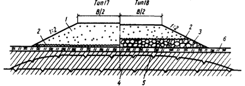 профиль насыпи на участках с грунтами III-IV