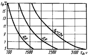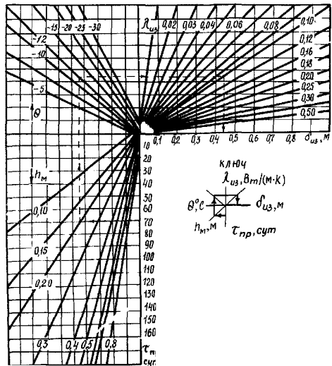 32. Номограмма для определения требуемой толщины теплоизолирующего покрытия на