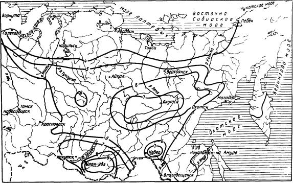 Примечания: 1. В горных районах в связи с вертикальной зональностью необходимо учитывать изменение природно-климатических условии по мере увеличения высоты пояса. 2. В гористой местности вечномерзлые грунты, как правило, встречаются на склонах северной экспозиции, в пониженных затененных местах и на заболоченных участках. Рис.2. Схематическая карта подзон