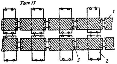 стилом предусматривают при интенсивном движении тяжелого автотранспорта на реках с быстрым течением и медленным нарастанием льда: а) на поперечинах, укладываемых на лед через каждые 0,8 - 1,0 м (см. рис. 8, тип 14). Такое усиление переправ возможно на всех реках, однако требует значительного расхода материалов. Грузоподъемность ледовой переправы, усиленной лежневым настилом, может быть ориентировочно определена по табл. 9; Рис. 9. Конструкция "плавающей" дереволедяной переправы: 1 - валик из снега; 2 - намороженный слой льда; 3 - снежно-ледяное полотно; 4 - продольные лежни, d > 20 см, 5 - сланевый настил из тонкомерной древесины; 6 - колесоотбой, d > 22 см; 7 - проволочная скрутка Ø 8 мм; 8 - естественный ледяной покров; 9 - вода Рис. 10. Усиление ледовой переправы клеефанерным дорожным покрытием: 1 - плита основного пути; 2 - поперечно уложенные плиты; 3 - монтажные стыки Рис. 11. Усиление ледяного покрова методом послойного намораживания льда: 1 - притрамбованный снег; 2 - жерди; 3 - намораживаемые слои; 4 - валик из снега; 5 - естественный ледяной покров; 6 - вода Рис. 12. Поперечный профиль ледовой переправы, усиленной дождеванием: 1 - снежный покров; 2 - намораживаемый слой льда; 3 - естественный ледяной покров; 4 - вода б) на поперечинах, укладываемых на лед через каждые 4 - 5 м и опирающихся на вмороженные в лед стойки (см. рис. 8, тип 15). Преимуществом этого способа является то, что несущая способность естественного льда увеличивается примерно в 1,6 - 1,7 раза, а влияние слоистости льда на грузоподъемность переправы уменьшается. Этот способ не следует применять на реках глубиной более 4 м и при резких и значительных колебаниях уровня воды; Таблица 9