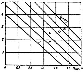5.76. Продолжительность технологических перерывов для промораживания торфяных слоев насыпи различной толщины устанавливают ориентировочно по табл. 23. Для использования машин в период технологических перерывов при промораживании слоев торфа работы ведут одновременно на нескольких участках. 5.77. Возведение земляного полотна автозимников с продленными сроками эксплуатации должно соответствовать требованиям "Руководства по сооружению земляного полотна автомобильных дорог" Минтрансстроя СССР (М.: Транспорт, 1982) и указаниям ВСН 84-89. Контроль качества строительства и ввод автозимников в эксплуатацию5.78. Для обеспечения качества работ по строительству автозимников контролируют: производство подготовительных работ; операции по возведению снежного (снежно-ледяного) полотна; прочность полотна автозимника перед вводом его в эксплуатацию (полевой контроль); производство земляных работ на сухопутных автозимниках. При строительстве сухопутных автозимников на первом этапе (см. п. 5.11) следует проверять: ширину просеки, качество работ по корчевке и срезке пней и планировке грунтового основания, особенно в районах с малоснежной зимой; положение полотна автозимника в плане (путем измерения отдельных углов поворота и прямых между ними), особенно автозимников, подлежащих в перспективе переводу в постоянные автомобильные дороги; правильность продольного и поперечного профилей и соответствие их проекту (продольный профиль проверяют нивелированием на сложных участках трассы и там, где выполняются земляные работы); соответствие всех параметров конструктивных элементов труб, мостов и линейных зданий проектным, качество их сооружения и готовность к нормальной эксплуатации. 5.79. В процессе возведения снежного (снежно-ледяного) полотна автозимника (второй этап строительства) проводят систематический контроль за плотностью снега и толщиной конструктивных слоев при устройстве снежных насыпей. Плотность снега определяют весовым методом с помощью стандартных плотномеров-снегомеров или металлических режущих колец, взвешиваемых на технических весах. Для контроля берут не менее трех проб (по оси и в 1,5 м от кромок проезжей части) через каждые 250 - 300 м снежного полотна при устройстве его методом постепенного наращивания и через каждые 100 м - при устройстве снежных насыпей. Замеренные значения плотности снега должны соответствовать требованиям пп. 4.8, 5.25 и 5.26. 5.80. Перед вводом в эксплуатацию построенного сухопутного автозимника определяют пригодность конструкции снежного или снежно-ледяного полотна с учетом несущей способности мерзлого грунтового основания для пропуска расчетных нагрузок. Полевой контроль прочности снежного (снежно-ледяного) полотна проводят при его толщине более 10 см, особенно тщательно на участках со снежными насыпями. При этом: замеряют толщину снежного (снежно-ледяного) полотна (покрытия); определяют с помощью ударника-зонда Союздорнии (рис. 20) количество ударов гири, необходимое для полного погружения его наконечника в верхний и нижний (соприкасающийся с грунтом) слои снежного полотна; находят по номограмме (рис. 21) допустимую удельную нагрузку на полотно с учетом интенсивности движения автомобилей. Допустимую удельную нагрузку на снежное (снежно-ледяное) полотно определяют по номограмме (см. рис. 21) следующим обр