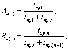 Значения tп.л или tп.з определяют по формуле где h - число календарных месяцев в теплом или холодном сезоне года; Ал(з) , Bл(з) - коэффициенты, вычисляемые по формулам: tпр.с, tпр.(n+1) - среднемесячные приведенные температуры воздуха (по модулю) для месяцев, приходящихся на конец и начало соответственно зимнего (при определении tп.л) или летнего (при определении tп.з) периода. Продолжительность летнего или зимнего периода τл и τз (ч) рассчитывают по формуле τл(з)