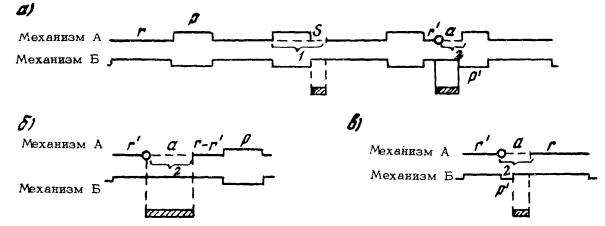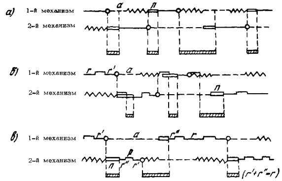 Рис. 1. Схемы расчета Ттм и Тср для системы механизмов: