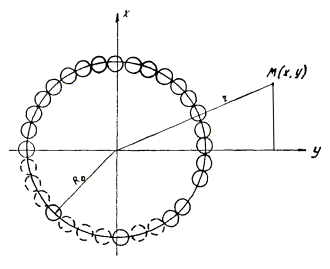 где r - расстояние точки от центра ряда, равное
