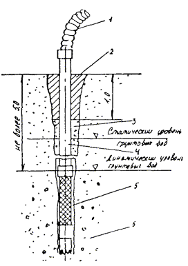 Рис. П.11.1: 1 - гибкий шланг; 2 - глина; 3 - гравийно-песчаный заполнитель; 4 - иглофильтр; 5 - сетка фильтра; 6 - водоносный грунт Приложение 12