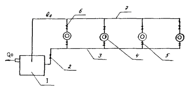 с расходом каждой из них Q и суммарным расходом всех