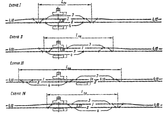 3. Укладку стрелочных переводов по схемам 1 и 2 на прочих путях с разрешения инстанции, утверждающей проекты, или инстанции, согласовывающей проекты внешнего железнодорожного транспорта, допускается проектировать без вставки.