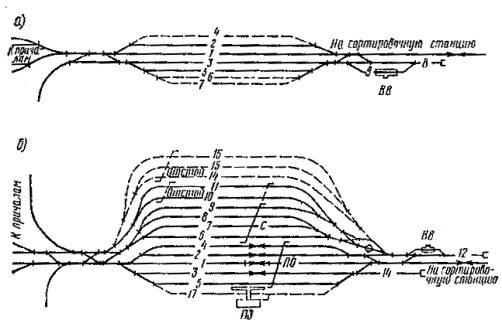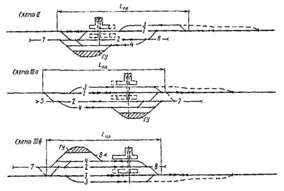 Приведенные в Инструкции схемы разъездов, обгонных пунктов, станций и узлов имеют целью показать общие принципы размещения основных парков и устройств.