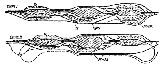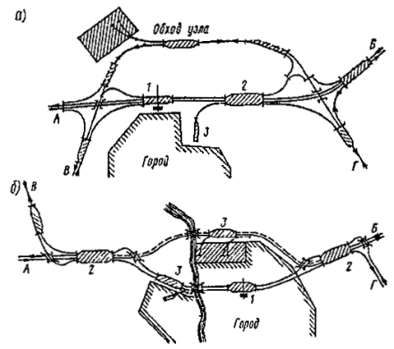 Схемы узлов и условия их применения, примыкания к узлам новых линий. 86