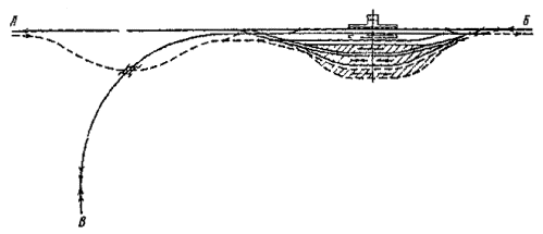 4. При укладке двух смежных стрелочных переводов, когда торец крестовины одного перевода располагается за торцом крестовины другого (см. схему 3) и когда рамные рельсы одного перевода располагаются за торцом крестовины другого (см. схему 4), наименьшее расстояние L между центрами переводов определяется в каждом случае из условия, чтобы расстояние Е между осями параллельных путей было не менее величины, установленной «Правилами технической эксплуатации железных дорог Союза ССР», а расстояние между приемо-отправочными путями должно быть не менее 4,8 м. Указанная величина L определяется по формуле