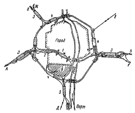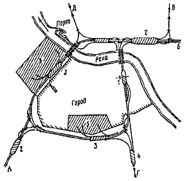 Генеральные схемы и ТЭО развития железнодорожных узлов и крупных станций, проекты строительства (развития) станций следует разрабатывать в увязке с проектами планировки городов, промышленных узлов (районов) и развития всех видов транспорта как составных частей единой транспортной системы, определяя взаимное расположение станций, подходов главных и соединительных путей и обходов с учетом перспективы роста прилегающих населенных мест, промышленных предприятий и сооружений других видов транспорта.