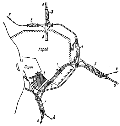Подъездные пути следует проектировать в увязке с генеральными схемами комплексного развития транспорта промышленных районов и узлов, проектами районной планировки, проектами планировки и застройки городов и других населенных пунктов, схемами развития ближайших железных дорог общей сети, а также в увязке с работой станций примыкания железной дороги общей сети и внутренних путей промышленных предприятий.