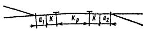 12. При укладке на главных путях двух смежных стрелочных переводов, где предусматривается движение пассажирских поездов со скоростями 121-160 км/ч между стыками рамных рельсов или между торцом крестовины и началом (или концом) переходных кривых (см. схемы 10 и 11), должны быть прямые вставки K2 длиной не менее 25 м.