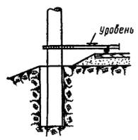 Примечание. Рабочие, занятые вертикальной регулировкой опор, засыпкой котлованов с уплотнением грунта и установкой анкерных оттяжек разбиты на 4 звена по 4 чел. в каждом. На двухпутных участках, оборудованных автоблокировкой, рекомендуется (по согласованию с поездным диспетчером) в соответствии с § 220 «Инструкции по движению поездов и маневровой работе на железных дорогах СССР» отправлять установочные поезда на перегон по сигналам автоблокировки, не ожидая закрытия перегона для производства работ. После этого машинист котлованокопателя, включив механизм опускания рабочего органа, опускает последний на грунт, включает транспортер, ковшовые цепи и приступает к разработке котлована. После достижения проектной глубины концевые выключатели срабатывают и ковшовые цепи останавливаются. Затем машинист поднимает рабочий орган из котлована, наклоняет его на выдвижной раме, переводит механизм из рабочего положения в транспортное и переезжает к месту следующего котлована. Размеры в плане котлована, разрабатываемого многоковшовым котлованокопателем ВК, позволяют производить установку опор без лежней. При необходимости установки опор с лежнями котлован разрабатывают двумя смежными параллельными вертикальными проходками. 2.3.8. Разработку котлованов буровой машиной осуществляют в следующем порядке. После прибытия на место работ машинист дрезины останавливает ее у места будущего котлована таким образом, чтобы после поворота фермы с рабочим органом на заданный угол центр бура совпал с центром котлована. Затем помощник машиниста дрезины освобождает домкраты, машинист бурового механизма поворачивает ферму на заданный угол, при котором расстояние от оси пути до центра бура будет равно расстоянию от оси пути до центра котлована, переводит раму бура в вертикальное положение, производит точную установку бура над центром котлована путем передвижки дрезины, затормаживает ее, опускает бур до соприкосновения с грунтом, опускает опорные домкраты и опирает их на грунт, приводит бур во вращение и начинает разрабатывать котлован. Цикл бурения состоит из заглубления бура на 0,7 - 0,8 м, подъема бура с грунтом выше поверхности грунта, разбрасывания грунта за счет центробежной силы, появляющейся при увеличении числа оборотов бура и опускания бура в котлован. Циклы бурения повторяют до достижения проектной глубины котлована, после чего механизм переводят в транспортное положение и переезжают к следующему котловану. Диаметр разрабатываемых буровой машиной котлованов в зависимости от диаметра бура составляет 500, 600 и 800 мм, что обеспечивает возможность установки в котлованы консольных опор, не имеющих лежней. 2.3.9. В комплект механизмов, работающих «с пути», в целях обеспечения разработки котлованов в различных грунтовых условиях для опор как с лежнями, так и без лежней, рекомендуется включить буровую машину, обеспечивающую разработку котлованов в тяжелых, а также в мерзлых грунтах, и многоковшовый котлованокопатель, обеспечивающий разработку котлованов для опор, имеющих лежни или опорные плиты, и для анкеров анкерных опор. 2.3.10. При работе с котлованокопателями надлежит руководствоваться инструкциями по их эксплуатации. Во время работы котлованокопателей нахождение на них посторонних лиц не разрешается. Запрещается также стоять у бу