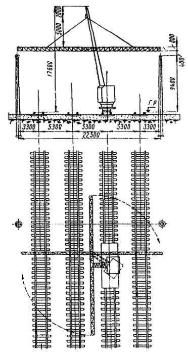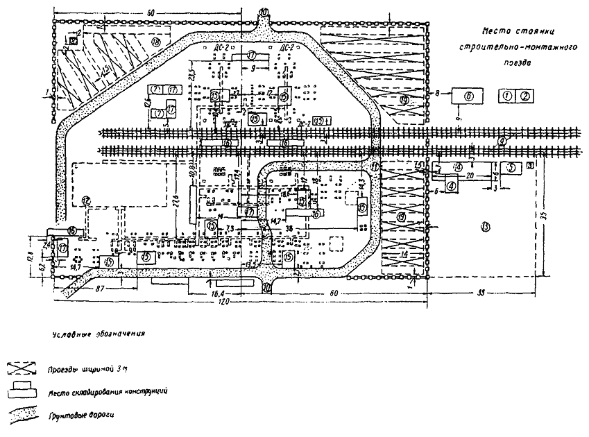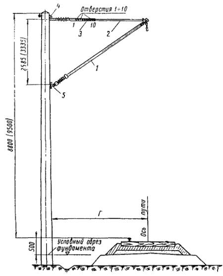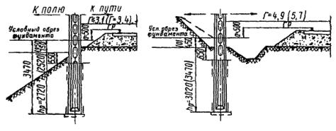 Комплектовочные базы устраивают на раздельных пунктах из расчета обслуживания одной базой, как правило, двух прилегающих перегонов. В случаях, когда заказчик (дорога) не может предоставить пути и необходимую площадь (по рекомендуемой схеме), а устройство базы требует выполнения дорогостоящих земляных работ, то условие размещения их может быть изменено в зависимости от конкретных производственных условий, но при этом следует непроизводительный пробег установочных поездов ограничивать одним - двумя перегонами. Оптимальное решение устанавливается на стадии разработки проекта организации строительства на основе технико-экономического сравнения затрат на устройство баз с затратами, вызванными непроизводительным пробегом установочных поездов. Линейные комплектовочные базы должны обеспечивать: а) стоянку механизмов (двух комплектов для работы «с пути»), занятых на сооружении опор контактной сети; б) разгрузку, сортировку и складирование необходимого запаса конструкций; в) комплектование и погрузку опор и фундаментов на платформы установочных поездов или на транспортные средства, обеспечивающие работу по сооружению опор контактной сети «с поля»; г) производство маневров с установочными средствами без нарушений операций по разгрузке и погрузке конструкций; д) сохранность конструкций, устранение потерь их и более высокую производительность установочных поездов, обусловленные концентрацией всех средств в едином комплексе - базе. Приложение 4ГАБАРИТЫ ОПОРНЫХ КОНСТРУКЦИЙ И ПОДВЕСКИ