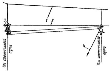 4.6.8. Контактный провод выправляют при помощи деревянного или свинцового молотка и правила. Выкрутку контактного провода производят при помощи правочных ключей. Перед выкруткой необходимо осмотреть контактный провод в зоне ее действия (2 - 3 м). При наличии пайки выкрутку необходимо производить, соблюдая особую осторожность, находясь спиной в сторону средней анкеровки. При плохой пайке до выкрутки контактный провод следует соединять путем стыкования. 4.6.9. Проверка положения контактного провода относительно оси пути производится по рейке, закрепленной на вышке, или с помощью отвеса. При работе на кривых участках пути следует учитывать смещение центра пантографа относительно оси пути, вызванное возвышением наружного рельса. Смещение определяется по формуле: