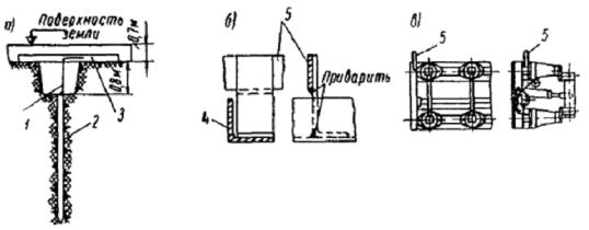 Рис. 1. Общий вид блочного фундамента Рис. 2. Соединение опор с блочным фундаментом