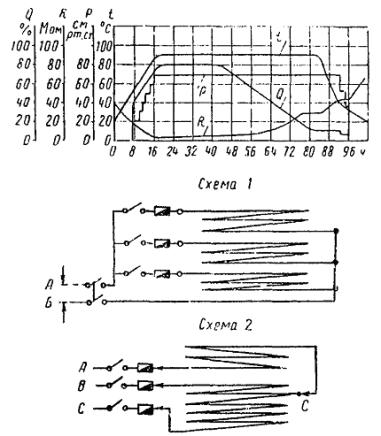 где U - подводимое напряжение в в; L - периметр бака в м; А - коэффициент пропорциональности, зависящий от р: р............... 1 1,25 1,5 1,75 2; А............... 1,85 1,7 1,6 1,5 1,45. Мощность Р намагничивающей обмотки (или секции обмотки) составит: Р = р×L×h, где h - высота обмотки, м. Сечение провода берется в зависимости от протекающего в обмотке тока, равного
