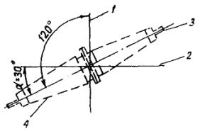 2.4.2. До начала работ по сооружению опор контактной сети «с поля» производитель работ и строительный мастер, руководствуясь ведомостью распределения участков по способам производства работ («с пути» или «с поля»), должны сделать осмотр мест, где предусматривается разработка котлованов и установка опор «с поля». При этом определяются: объем и характер работ по устройству подъездов и площадок для стоянки механизмов у места разработки котлованов и установки опор, выполняемый бульдозером; рабочие отметки земляного полотна (высоты насыпей и глубины выемок), необходимые для точной разбивки котлованов и места остановки котлованокопателя; характер грунтов; наличие проводов связи и других препятствий для проезда механизмов к месту производства работ; состояние дорог, по которым предусматривается доставка опор к месту их установки. На основании данных осмотра и проектных материалов составляют «Ведомость опор контактной сети, сооружаемых «с поля», в которой указываются: места расположения опор (перегон, километр, пикет и плюс), рабочие отметки земляного полотна, расстояния от котлована до площадок стоянки котлованокопателя, характеристика грунтов, размеры котлована в плане и по глубине, тип опор, характеристика подъездов и работ, необходимых для их улучшения. Выписка из этой ведомости должна быть выдана строительному мастеру или бригадиру комплексной бригады, а также механикам бульдозера, котлованокопателя и установочного крана. 2.4.3. Разбивку положения опор и мест стоянок котлованокопателя производят на основании плана контактной сети и «Ведомости опор контактной сети, сооружаемых «с поля». Разбивку мест стоянок котлованокопателя следует осуществлять с помощью шаблона, которым после закрепления центра котлована определяют положение края гусеницы котлованокопателя, располагаемого вдоль оси пути. Это положение отмечают колышком. 2.4.4. Для обеспечения четкой работы комплекта механизмов должен быть составлен технологический график их движения по каждому перегону (рис. 11) с учетом конкретных местных условий - расстояний перемещения в течение смены, категорий грунтов, характеристики подъездов, расстояния от комплектовочной базы до мест установки опор и др. Рис. 11. Примерный технологический график работы по сооружению опор «с поля» 2.4.5. До начала сооружения опор необходимо подготовить бульдозером площадки и подъезды с таким расчетом, чтобы обеспечить на половину смены работу остальных механизмов. Площадка для стоянки котлованокопателя или крана с трактором и прицепом (трайлером) должна быть горизонтальной; подъезды к площадке со стороны грунтовой дороги должны иметь плавные закругления с радиусом не менее 15 м. Расстояние от площадки до котлована должно соответствовать данным «Ведомости сооружения опор контактной сети «с поля». Рис. 12. Схема разработки котлованов «с поля»: 1 - котлованокопатель МКТС-2; 2 - котлованы; l - расстояние между опорами по проекту 2.4.6 Разработку котлованов консольных опор «с поля» котлованокопателем МКТС-2 (рис. 12) необходимо производить в следующем порядке: в соответствии с данными «Ведомости сооружения опор контактной сети «с поля» машинист канавокопателя подъезжает к месту работ и устанавливает машину параллельно оси пути (кабина со стороны поля) таким образом, чтобы край гусеницы, находящейс