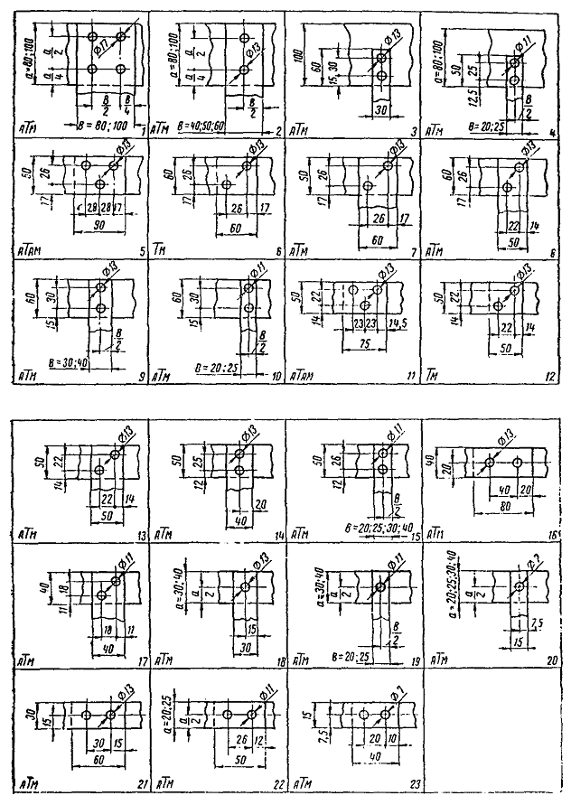 Примечание. Геометрические размеры и объем бетона блоков Р3, Р4, Р5, Р6, Р7 и Р8 одинаковые для первой, второй и третьей модификаций данных типоразмеров. 2. Привязка анкерных болтов блочных фундаментов