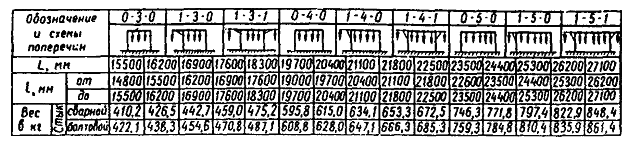 Примечание. Типы и количество лежней в скобках даны для нулевых мест и выемок. Схемы жестких поперечин и расход металла: L - длина поперечины; l - расстояние между стойками 2. Характеристика основных типов поперечин
