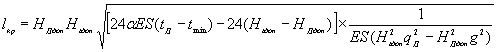 где НДдоп, Нtдоп - наибольшее допускаемое значение натяжения провода воздушной линии соответственно при режиме наибольшей добавочной нагрузки и низшей температуре воздуха; qД - результирующая линейная нагрузка на провод воздушной линии при режиме наибольшей добавочной нагрузки, g - вес 1 м провода; tД, tmin -соответственно температура воздуха при режиме наибольшей добавочной нагрузки и низшая температура воздуха в заданном районе; a - температурный коэффициент линейного расширения материала провода; S, Е - соответственно сечение провода и модуль упругости материала провода. 3.8. Для пролетов длиной меньше критического за исходный расчетный режим следует принимать режим низшей температуры воздуха, для пролетов длиной больше критического - режим наибольшей добавочной нагрузки.