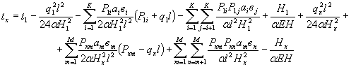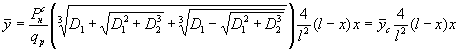 где Р1, Р2, Р3 … Рi, Рк - сосредоточенные силы, действующие на провод в исходном режиме на расстоянии а от левой опоры на расстоянии вi от правой; i = 1, 2, 3 … К - число действующих на провод в исходном расчетном режиме сосредоточенных сил; Рх1, Рх2, Рх3 … Рхm ... Pxn - сосредоточенные силы, действующие на провод в рассчитываемом режиме на расстоянии am от левой опоры и на расстоянии вm от правой; i = l, 2, 3 ... К - число действующих на провод в рассчитываемом режиме сосредоточенных сил. Индекс «1» относится к величинам в исходном расчетном режиме и индекс «х» - в рассчитываемом режиме. 3.15. Стрела провеса провода воздушной линии на расстоянии х от левой опоры определяется по следующему выражению: