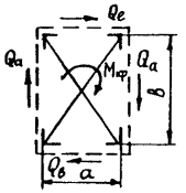 lo - расстояние от места приложения крутящего момента для рассматриваемого сечения; da и dв - длины раскосов соответственно по сторонам a и в. Крутящий момент в стержнях определяют в зависимости от их вида в соответствии с табл. 21.