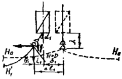 Рис. 7. Схема действия сил на опору при обрыве несущего троса На конце консоли приложена вертикальная нагрузка QД Н, QД = КДQс, (14) где КД = 1,9 - динамический коэффициент; Qc - вес цепной контактной подвески, зависящий от типа применяемых проводов и длины пролета, Н. Консоль (рис. 8) развернута на угол bк к линии, перпендикулярной оси пути таким образом, что точка закрепления троса передвинута вдоль пути на величину hп, равную конструктивной высоте цепной контактной подвески. Угол bк определяют из условия