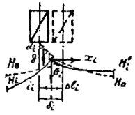 Рис. 11. Схема опоры с переменным моментом инерции для расчета ее прогибов в точках: а-А; б-Б При действии нескольких сил на опору их располагают на границах смежных участков. Если необходимо определить прогиб d2 точки В, в которой сила не приложена (например, на уровне контактного провода), то находят прогиб ближайшей точки на границе двух участков, а прогиб d2 - по формуле (33).