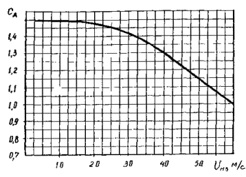 Рис. 9. Коэффициент, учитывающий величину натяжения несущего троса