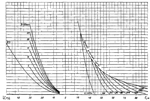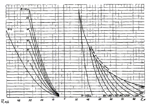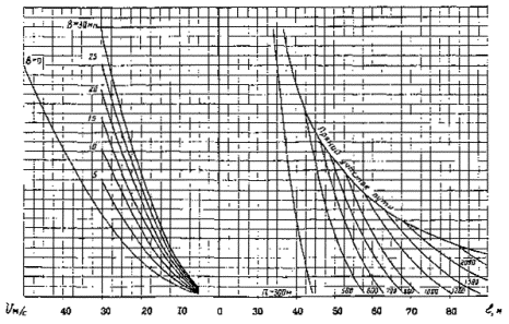 Рис. 1. Параметр шероховатости подстилающей поверхности zо, м. Коэффициент изменения ветрового давления: I - насыпь высотой 40 м (zм на рис. 2); II - нулевое место; III - выемка глубиной 5 м (zв на рис. 2)